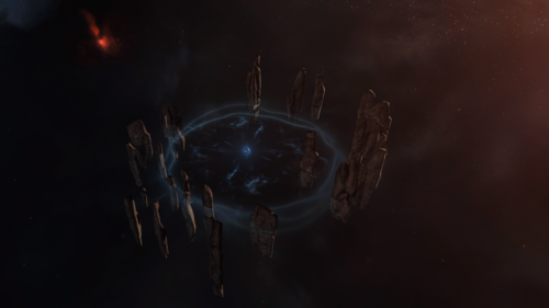 Explorers entering Friggi often pause at Clear Water Spring, where silent stone monoliths encircle a glowing blue core, an enigmatic relic adrift in Caldari space.