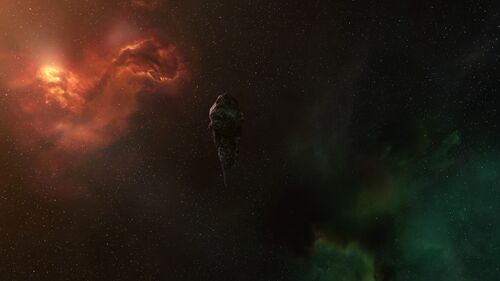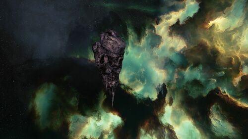 The Ebony Tower’s “rock” isn’t a conventional asteroid; it resembles a strange geological monolith suspended in space. Its form is elongated and tapering, almost like a stalactite or an inverted mountain peak, narrowing to a pointed spire at the bottom. The structure’s foreboding silhouette and its narrative importance in New Eden’s mission landscape have made it a notable landmark for explorers and lore seekers alike. Two Gallente COSMOS agents are present here.