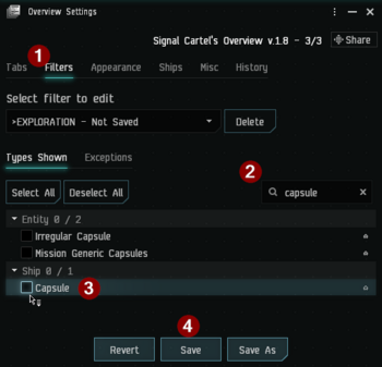 - Remove capsules (aka pods) from your Overview Settings. Destroying another player's pod is an almost sure-fire way to get kicked from Signal Cartel! By removing pods from your overview, you won't be able to inadvertently target them. Note that this does reduce your intel a bit, so the choice is yours.