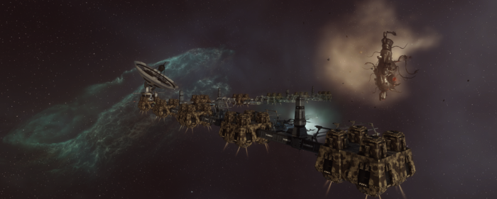 Caldari Navy Nexus Relay – Though more overt in nature, this small shipyard guarded by Chimera-class Carrier serves a purpose similar to that of the Gallente unmarked operation: that over-watch and support of the Militia operations going on within the Black Rise region. The sort of perpetual vigilance and readiness that centuries of strife can create in a people once again fully on display. Interestingly an infested watch tower is also present at this site. What purpose it serves is not immediately clear. More info here.