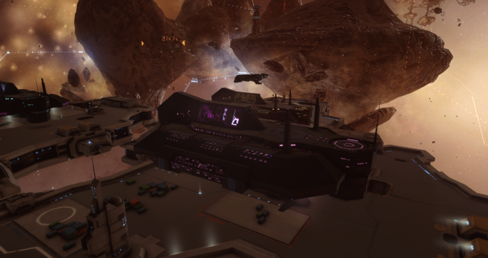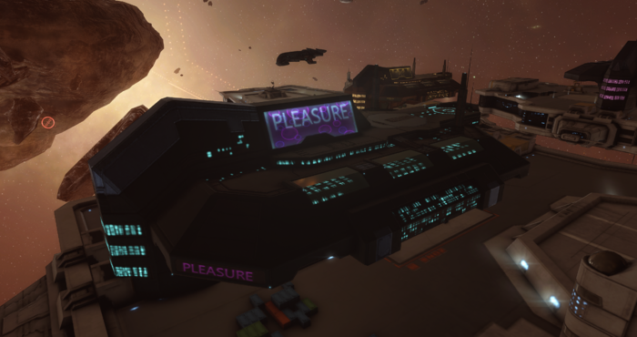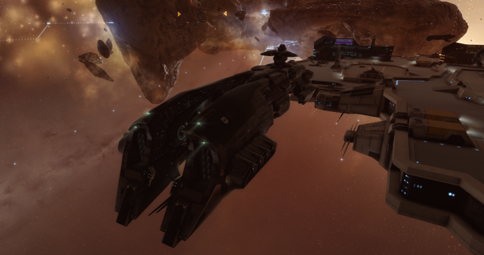 The site comprises a network of asteroid colonies of various sizes surrounding a central asteroid mining post. A sprawling cargo rig platform houses numerous warehouses and cargo containers alongside docked transport ships. Yakura’s miners also have access to a variety of pleasure houses. This is a Serpentis COSMOS site, where numerous agents are active. Among them are Bley Oreriel (Level 4 agent) piloting a Myrmidon, Cliene Veine (Level 4 agent) piloting a Dominix, Jarvas Ladier (Level 4 agent) piloting a Megathron, as well as Wessette Gauze and Kaymotin Grandace (both Level 4 agents) piloting Oneiros-class ships.